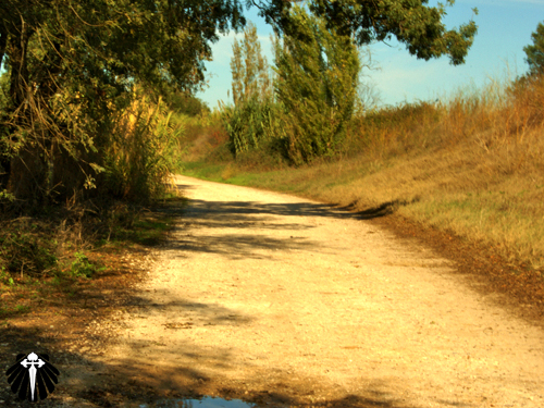 Chegando ao outro lado seguimos pela estrada sempre em frente. De início se pensa que mais uma vez o peregrino terá que sofrer seguindo as autopistas portuguesas, até que uma seta nos envia para uma estrada de terra batida.