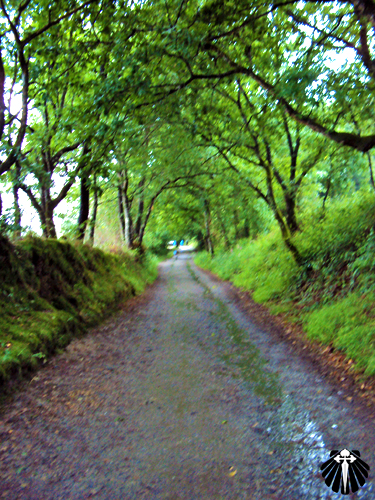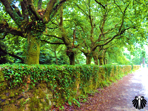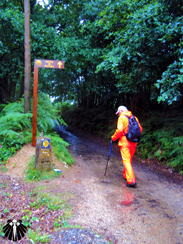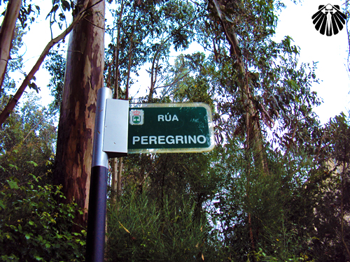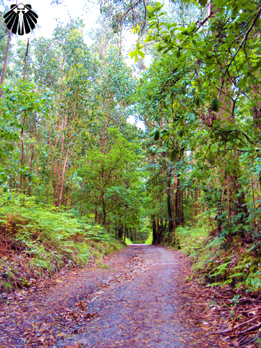 Tome cuidado para não perder as setas amarelas, pois em dado momento elas seguem para a direita no cruzeiro junto a carretra, em direção ao Ayutamiento, quando de novo, segue pelo bosque de eucaliptos.