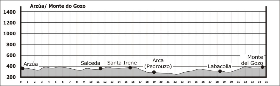 Assim o peregrino deve se despedir de Arzúa cedo, pois o percurso leva de 7 à 8 horas de caminhada, ganhando pouco a pouco todas as aldeias do trajeto.