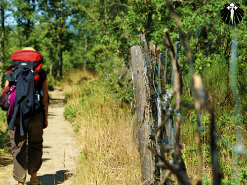 Surge então uma cerca, onde alguns peregrinos a enfeitam com pequenas cruzes feitas de galhos e madeira. Um pequeno plágio da cerca encontrada anteriormente na etapa após Logroño.