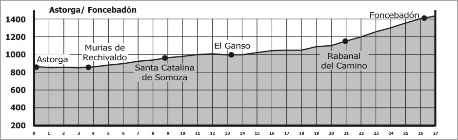 O percurso até Foncebadón é tranquilo, com um acentuado e longo aclive que vai de Murias de Rechivaldo até Foncebadón.