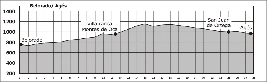 A etapa entre Belorado e Agés não apresenta maiores dificuldades, um pequeno aclive e longas retas entre bosques fazem parte da paisagem.