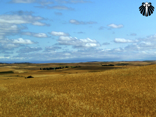 Assim a etapa vai chegando rapidamente ao seu final. Com a paisagem contínua e repetitiva da carretera, só sendo modificada com o surgimento de algum cruzeiro jacobino ou rotonda (rotatória) na estrada indicando a entrada dos vilarejos.