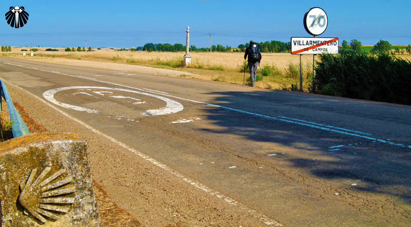 Não muito distante, apenas dois quilômetros mais a frente, já se alcança o vilarejo de Villarmentero de Campos, com albergues, bar e área de descanso na saída.
