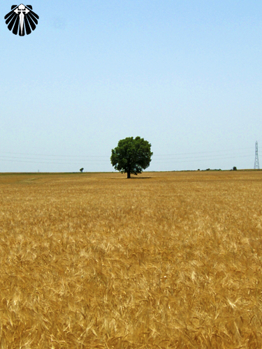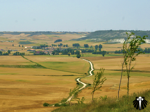 Ao retornar ao Caminho Francês, o peregrino se depara com a mesma paisagem anterior a Hornillos del Camino, a interminável plantação de cereais.