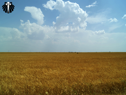 A principal característica da meseta é por ser constituída por longas estradas retas, com plantações de cereais de ambos os lados.