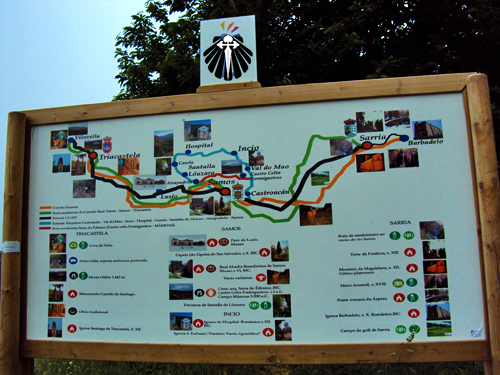 Tomando à esquerda e seguindo a carretera chega-se ao magnífico Monastério de Samos, à direita segue-se por San Xil por trilhas e a beleza dos bosques galegos até chegar a cidade de Sarria.