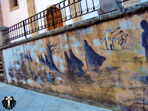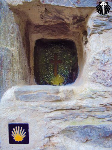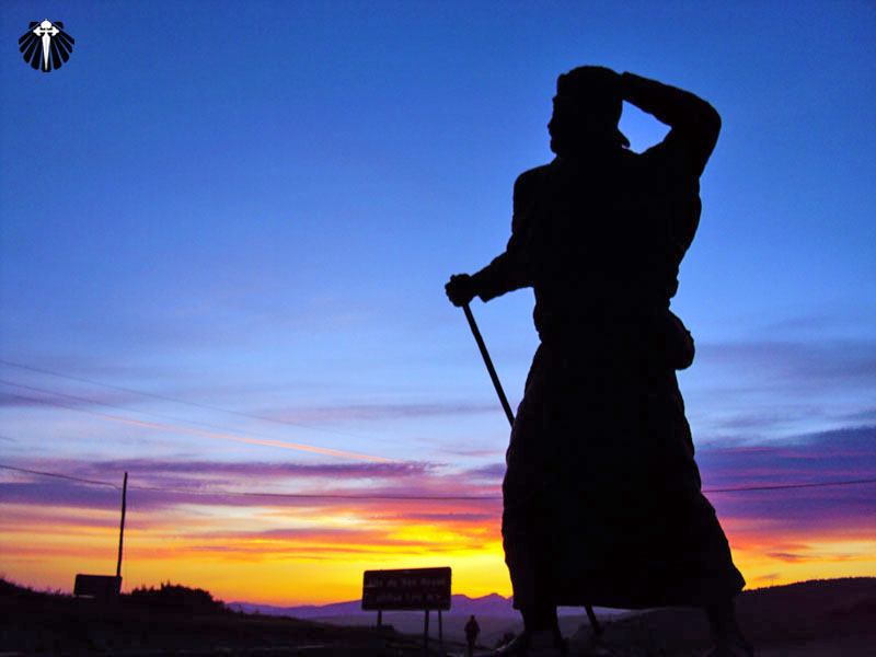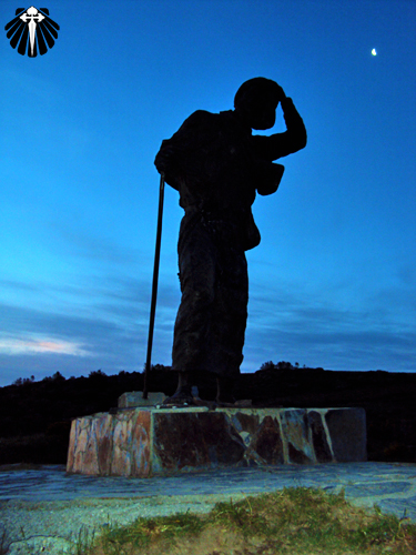 Chegando no Alto de San Roque, a 1.270 metros de altitude, encontra-se uma escultura em bronze de um peregrino, avançando em meio ao vento forte muito comum nesse trecho, seguindo em direção à Catedral de Santiago.