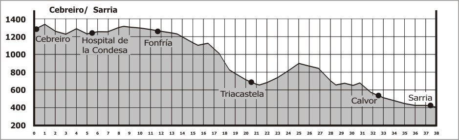 O Caminho Francês baixa mais 530 metros de altitude e se encontra pelos arredores da aldea de Fillobal, que conta com albergue, bar, mercado e acesso à internet.