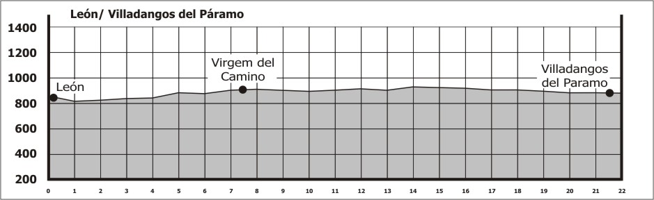 Seguindo pelo Caminho principal chega-se as terras del páramo de Valverde de la Virgem e por seguinte a San Miguel del Camino, sempre por estrada paralela a carretera nacional ou local, onde se encontram alguns bares.