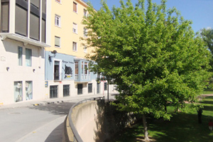 Após dois quilômetros atravessando o centro urbano de Nájera, deve-se pegar à esquerda após a ponte sobre o rio Najerilla e seguir pelo passeio às suas margens para chegar ao albergue da AACS de Nájera.