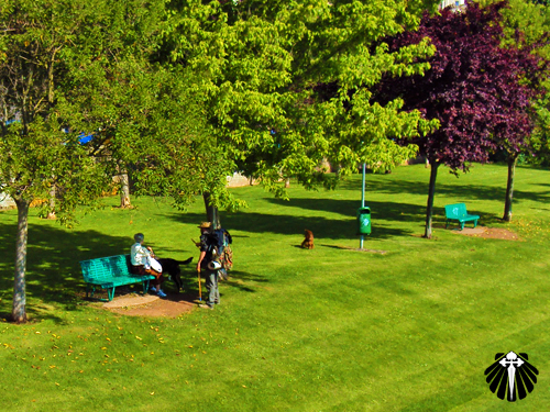 Chegando ao parque San Miguel, as setas amarelas seguem, entre bosques e jardins, pelo passeio de pedestres chamado de Via Verde até o parque de la Grajera.