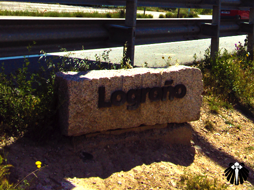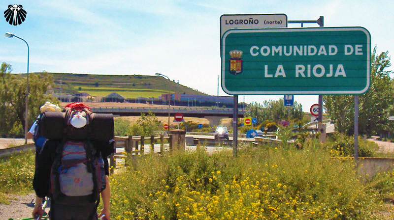 Ao chegar a zona industrial de Logroño, uma placa anuncia que a partir de agora o peregrino caminha em terras da comunidade de La Rioja.
