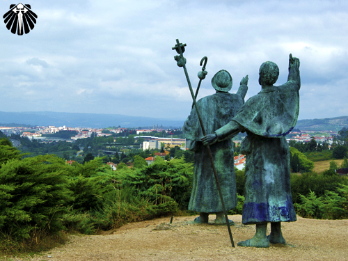 Antes de deixar o complexo de acolhida ao peregrino em Monte do Gozo, você não pode deixar de visitar o Miradoiro, onde duas estátuas de peregrinos apontam em direção a Catedral.