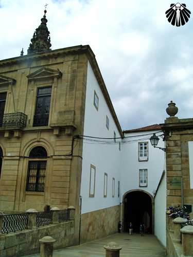 Chegando na praza da Inmaculada, pode-se ver uma das entradas da Catedral de Santiago de Compostela a esquerda e o Seminário Maior de San Martín Pinario a direita.