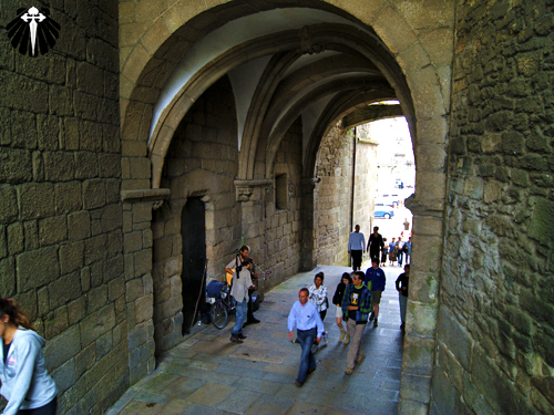 Atravessando o Arco del Palácio, chega-se a Plaza del Obradoiro, marco zero da peregrinação pelo Caminho de Santiago de Compostela.