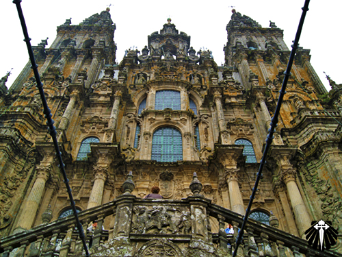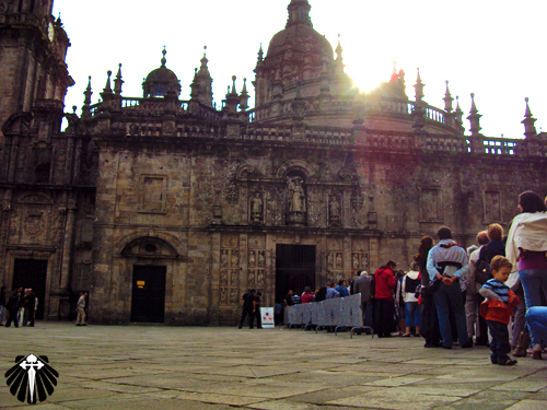 A Catedral se apresenta com toda a sua imponência e com sua bela fachada. Felizes e orgulhosos de terem chegado até ali, muitos peregrinos se emocionam.