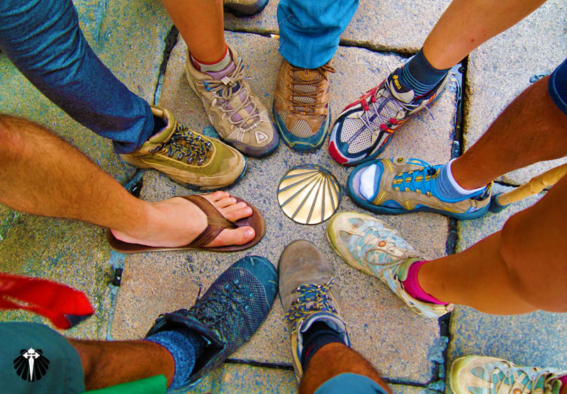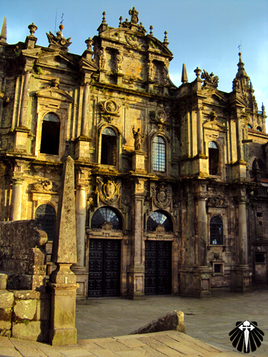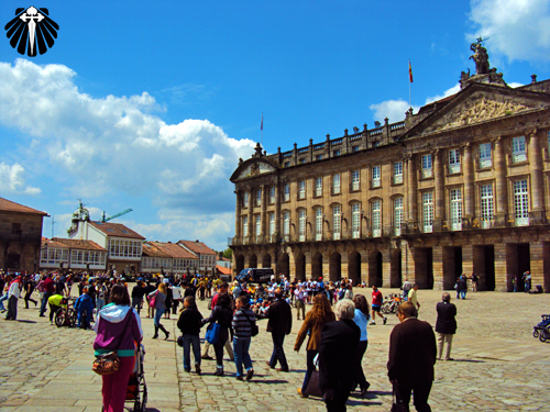 Ao sair da Catedral de Santiago, muitos peregrinos ainda extasiados de tanta emoção de chegar a Praza do Obradoiro, ficam ali sentados, desfrutando o sucesso da peregrinação pelo Caminho de Santiago de Compostela.