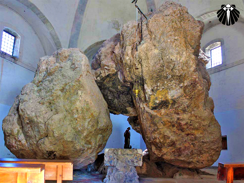 As três grandes rochas no interior são a principal atração da Ermita. Elas apoiam umas nas outras, criando uma pequena capela.