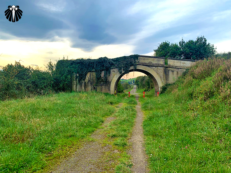 A paisagem mudará assim que o peregrino passar sob a linha férrea, onde a trilha volta a ser de terra e o verde dos campos tomam conta do horizonte.