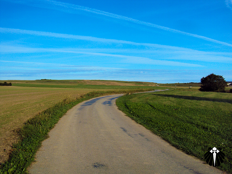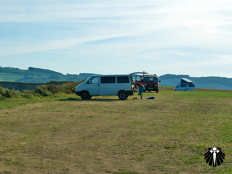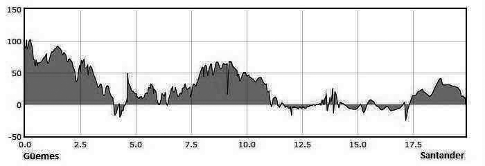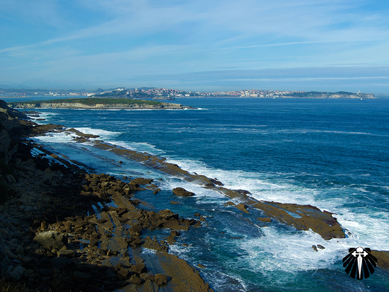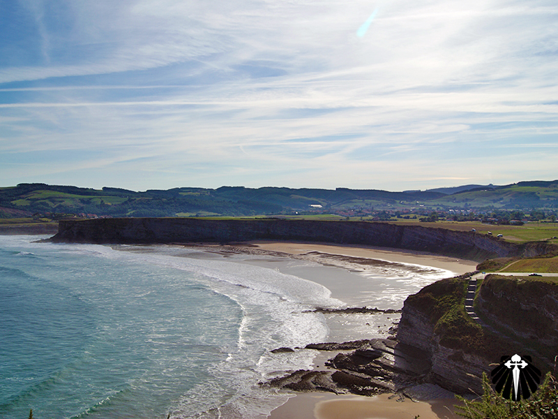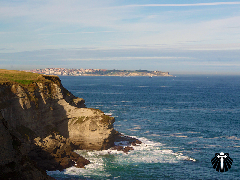 A cidade e o mar podem ser vistos ao longe, enquanto o peregrino desce o pequeno morro onde está localizado o albergue em Güemes deve pensar qual a estratégia deve seguir e ao chegar a CA-141 é hora de executá-la.