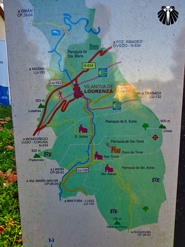 Um comentário de introdução para etapa, visto que, estando o peregrino em terras galegas, o mesmo deve se atentar para a sinalização indicativa nos "morróns" com as Vieiras azuis, antes a parte reta era direcionada para Santiago, com os ramos da Vieira representando uma rota do Caminho de Santiago, essa é a sinalização oficial conforme a documentação encontrada aqui.