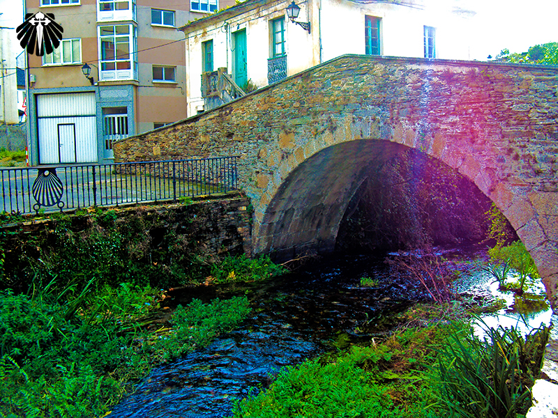 A trilha desce até o rio da Rata, onde o peregrino atravessa uma pequena ponte, justamente quando encontra a estrada novamente e segue o caminho para chegar a Vilela, cidade que presta serviços para o peregrino e onde se encontra o primeiro albergue da etapa.