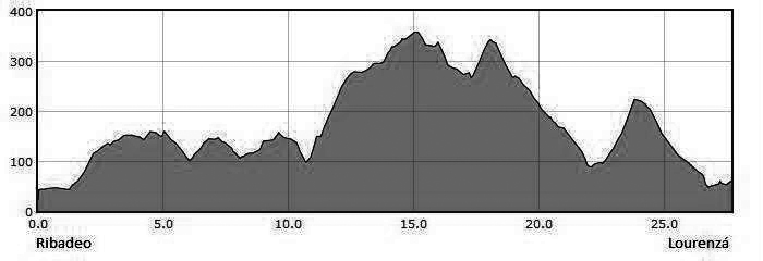 A etapa tem um pequeno monte no quilômetro 11, chegando no ponto mais alto em 400 metros de altitude no quilômetro 15, daí pra frente segue em descida até chegar em Lourenzá.