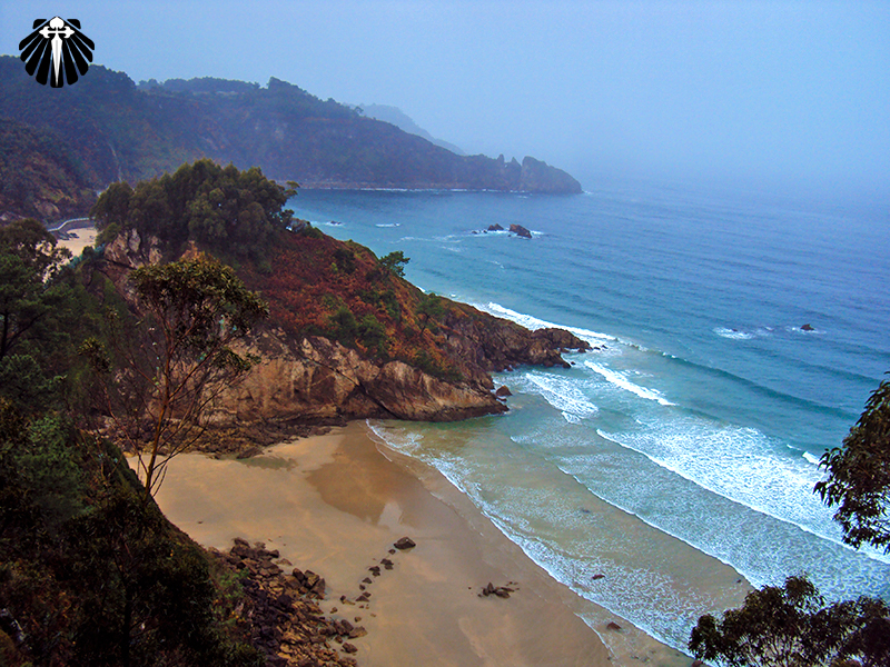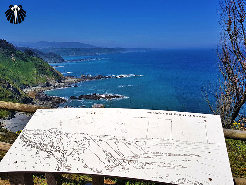 Assim, a saída de San Esteban se estende pelo passeio marítmo em direção à praia do Garrucho devendo o peregrino pegar o caminho à direita no final do estacionamento, subindo a trilha que leva ao Mirante do Espírito Santo.