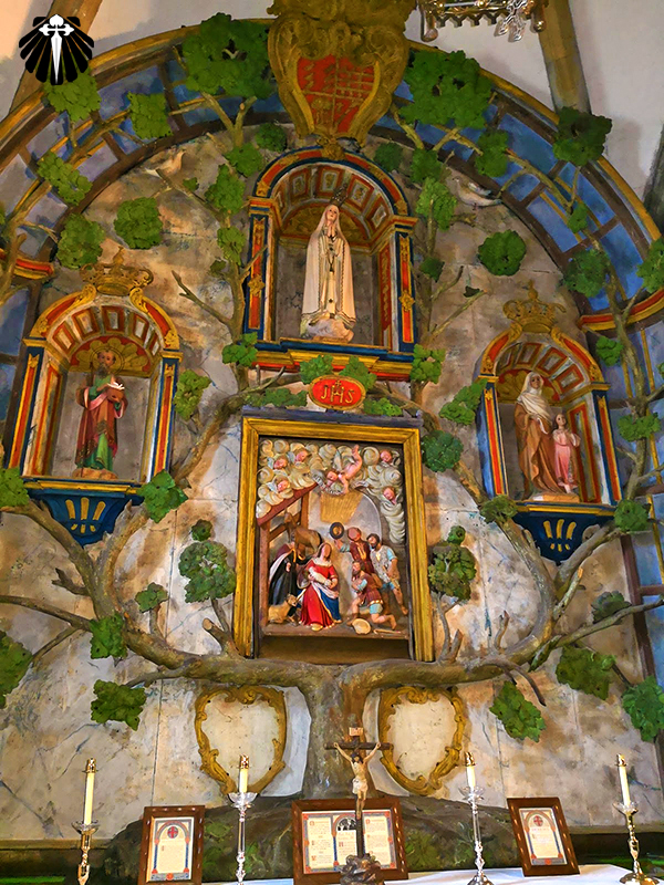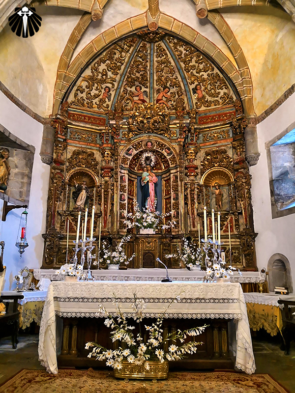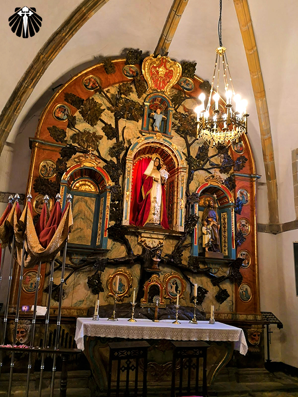 O retábulo-mor, em estilo barroco, é dedicado a Nossa Senhora da Humildade, à direita, o retábulo do Rosário, está representada a Árvore da Vida de Jesus e à esquerda, o retábulo de Santa Inés, onde está representada a Árvore do Nascimento de Jesus.