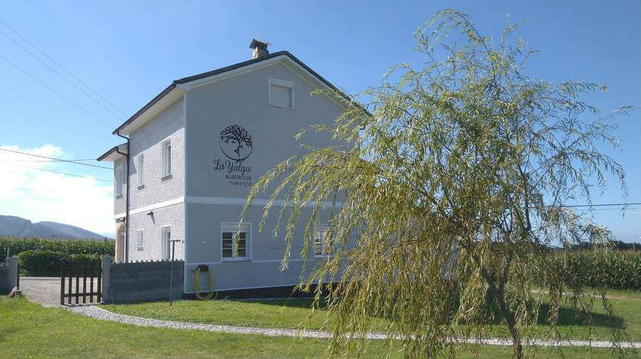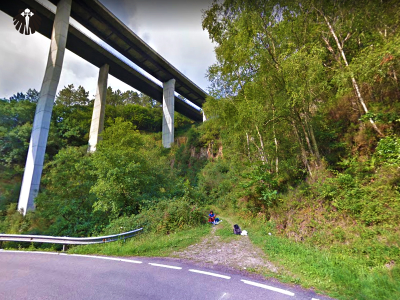 Alguns quilômetros à frente, ao atravessar o Rio Esva, o peregrino encontra outra opção de hospedagem turística perto da localidade de Cueva, com a vista da Carreteira Nacional passando no horizonte.