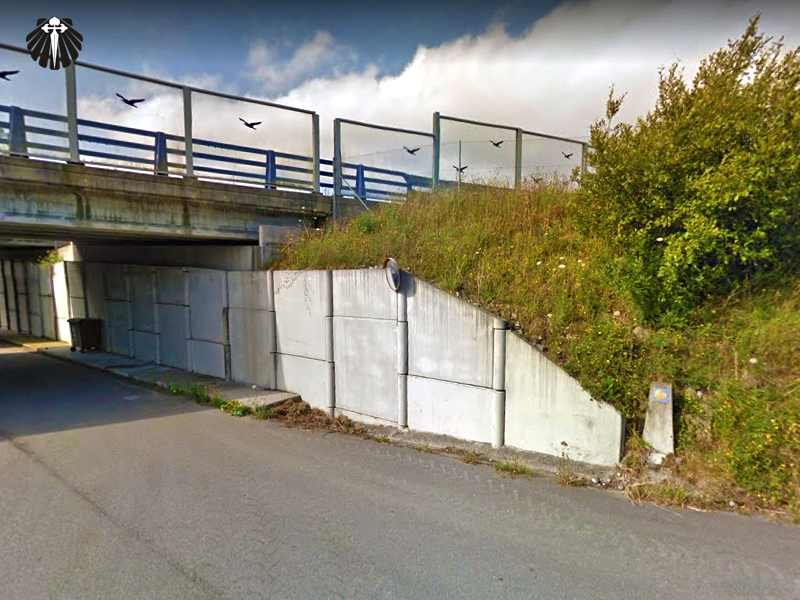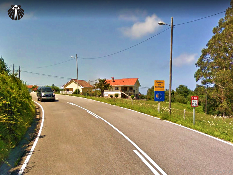 Pode-se ver os trilhos da linha férrea no alto pelo viaduto sobre a N-632 e após passar pelo córrego Arencias o peregrino se aproxima do vilarejo de Novellana.