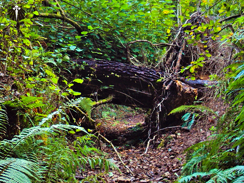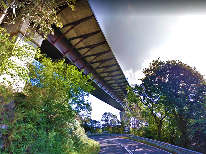 Serpenteando pela N-634, o Caminho do Norte de Santiago de Compostela atravessa o riacho Forcón, passando mais uma vez por baixo da rodovia nacioanl é possível ver ao longe as belas praias da enseada de Canero.