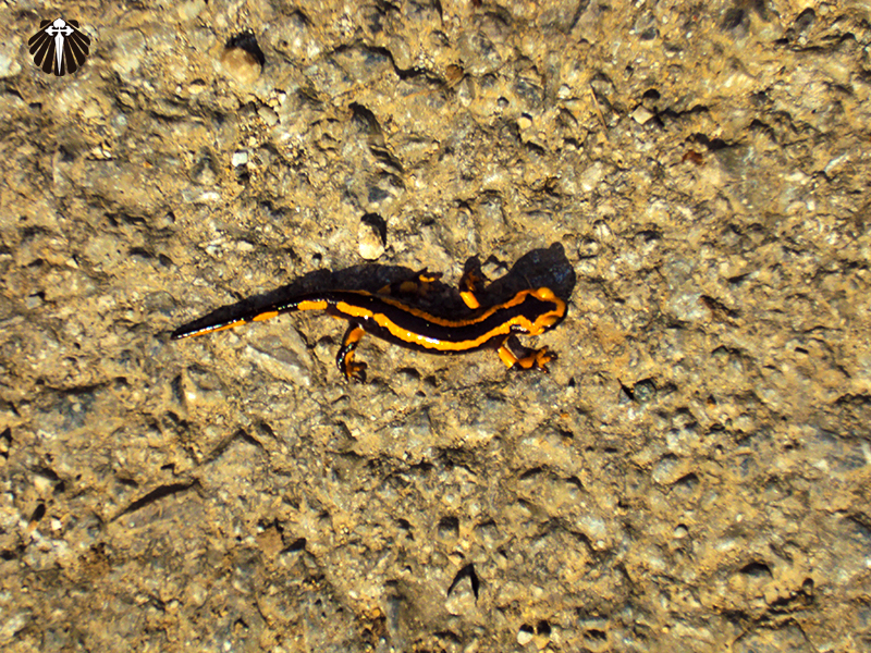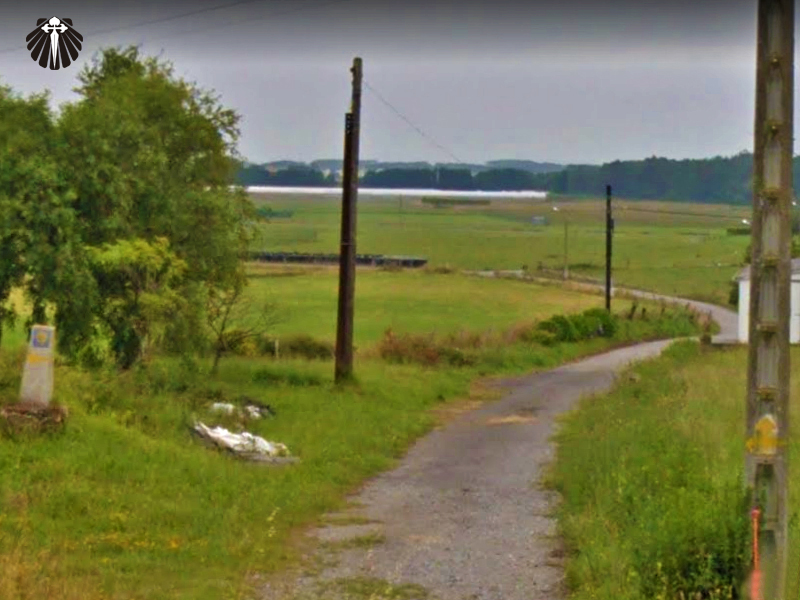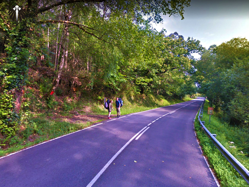 Seguindo adiante, as setas amarelas levam o peregrino em direção córrego Candán, com seus antigos moinhos, onde deve-se subir o canal e em seguida outra um pouco mais para se chegar em Santa Marina.