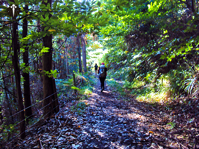Ao deixar o vilarejo para trás, as setas amarelas indicam um pequeno atalho por uma trilha que sobe bruscamente para o "Cerro" Llanorrozo, onde prontamente se junta à N-632 no cemitério, um pouco mais à frente.