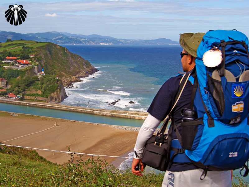 Zumaya se anuncia através da belíssima vista do alto do morro, muitos peregrinos fazem uma pausa para apreciar a cidade e tirar aquela foto da praia de Santiago.