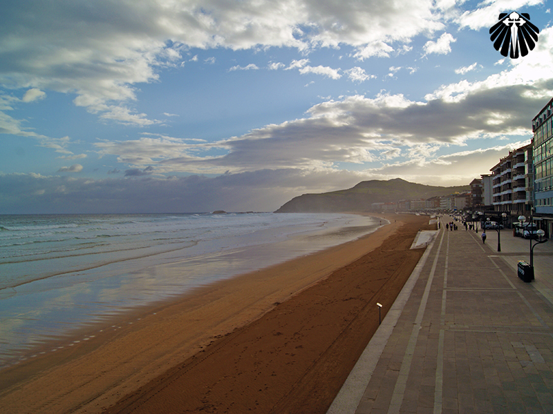 Pode-se seguir pela orla até encontrar com as setas amarelas no final do passeio marítimo, onde o Caminho do Norte encontra-se com a N-634 e segue pelo calçadão até Getaria, 5km de Zarautz.