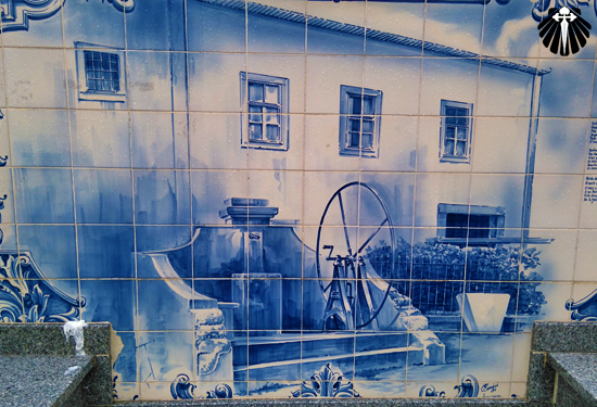 Um pouco adiante é possível ver o exemplo da arte sobre azulejos numa pequena fonte no Largo Sebastião Saraiva Lima, só não sei se a água é própria para o consumo, pois não havia nenhuma indicação e a mesma não estava funcionando. Não muito distante é possível descansar numa padaria e tomar outro pequeno-almoço ou até tomar uma bebida gelada para refrescar.