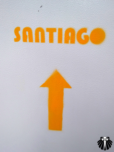 Logo em frente aos Bombeiros há uma pequena área de recreação esportiva onde o peregrino encontra um pequeno marco e setas indicativas, como o que se encontra no alto Leopold no Caminho Francês, mas creio que as setas estão apontadas para as direções incorretas.