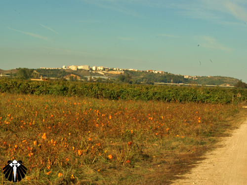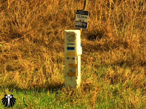 Chegando ao outro lado seguimos pela estrada sempre em frente. De início se pensa que mais uma vez o peregrino terá que sofrer seguindo as autopistas portuguesas, até que uma seta nos envia para uma estrada de terra batida.