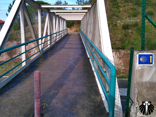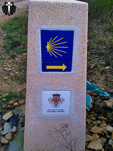 Eu só a encontrei porque fiquei sentado por ali durante algumas horas e consegui ver uma seta amarela próximo ao hidrante, senão teria passado direto como aconteceu com as peregrinas americanas. De qualquer maneira, há outras setas amarelas pintadas no leito do rio Mondego e ambas se encontram nas proximidades do viaduto da estrada nacional.