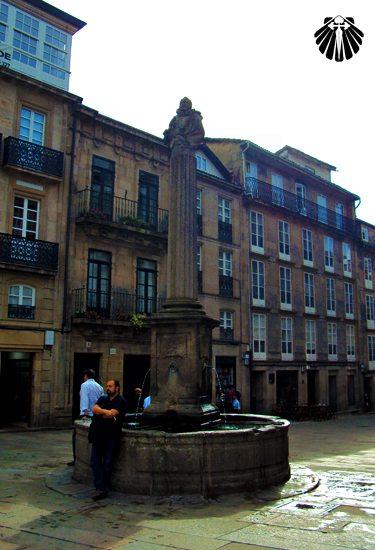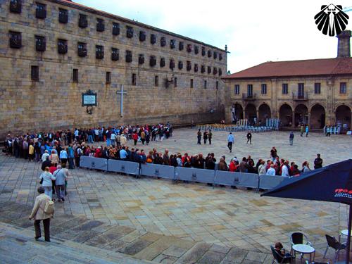 Ao sair da Catedral de Santiago, muitos peregrinos ainda extasiados de tanta emoção de chegar a Praza do Obradoiro, ficam ali sentados, desfrutando o sucesso da peregrinação pelo Caminho de Santiago de Compostela.