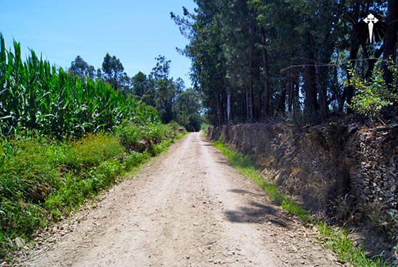 Voltando para o Caminho Português, continua-se a caminhar por estradas asfaltadas até a passagem pelos trilhos de trem nos arredores de Barcelos, daí passa-se a caminhar por estrada de terra e com um pouco de sombra por uns dois quilômetros.